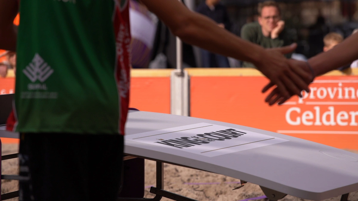 The highlight of our event was Sunday afternoon on the Markt square where, after the King Of The Court competitions, professional beach volleyball players were competing in table volleyball according to King of the Court rules.